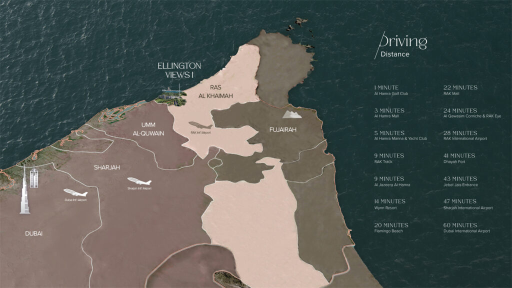 Oceano is nestled on Al Marjan Island. Travel time from Oceano to the centre of Ras Al Khaimah will take half an hour, while Dubai will be accessible within an hour by car.