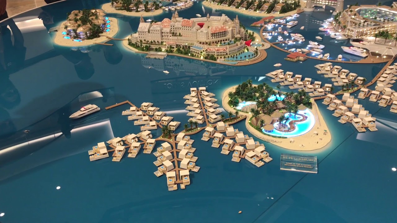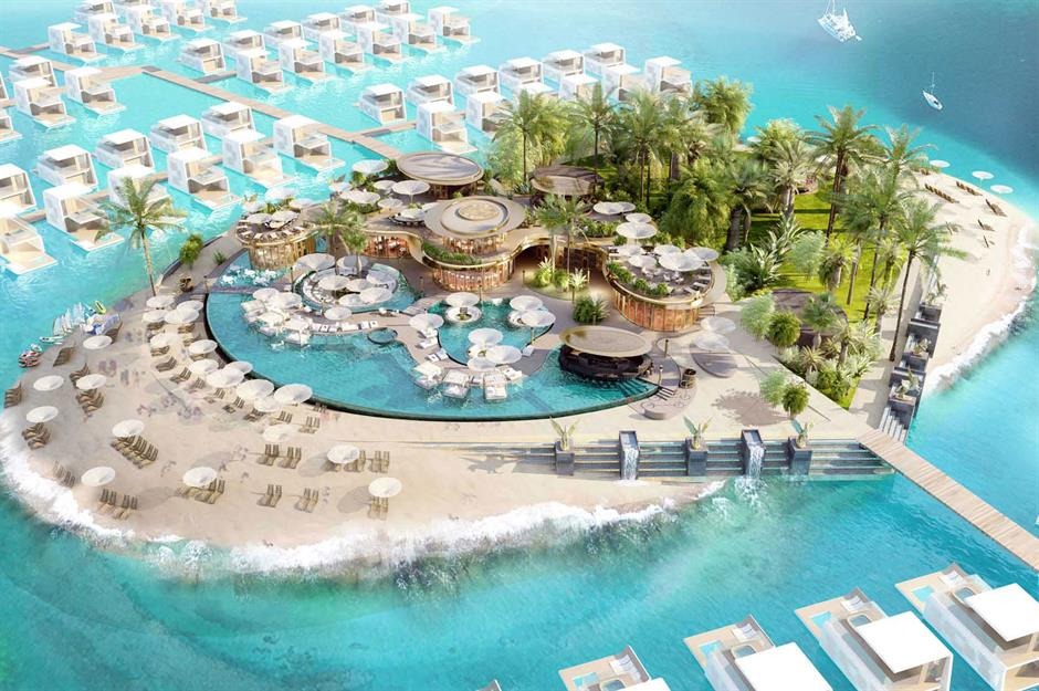 133 Floating Seahorse villas anchored along floating piers that connect to the island